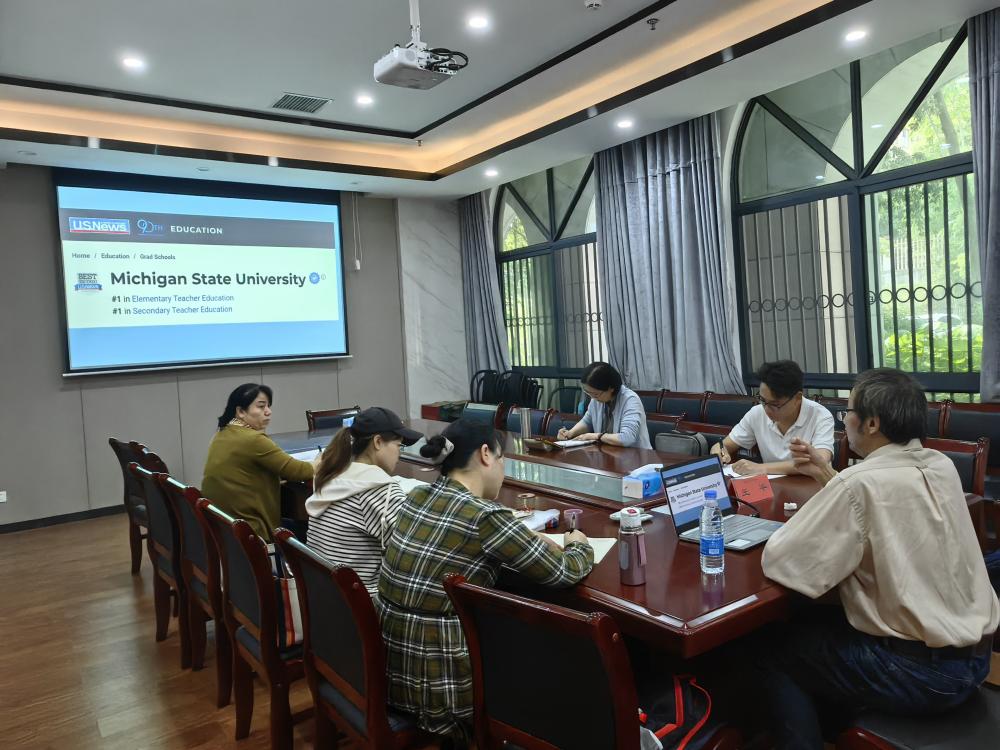 2024年4月23日下午,底特律法明顿学院王平博士受邀来科教系开展教育讲座与研讨交流,讲座由科教系主任江华军主持,科教系部分教师参加了讲座。