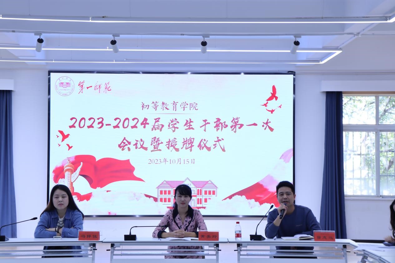 为了进一步增强伟德bv1946官网学生干部的凝聚力,提高学生干部的工作效率,2023年10月15日,伟德bv1946官网在国际广场三楼举办学生干部第一次会议暨学生干部授牌仪式。学工办主任黄美玲、分团委书记冯择佳、学工办副主任曾志远以及全体学生干部参加会议。会议由学生副书记助理刘佳敏主持。