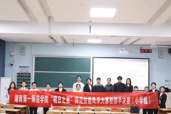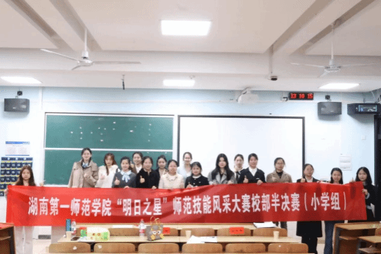 2025年11月9日,院承办的湖南第一师范学院第五届“明日之星”师范风采大赛小学组半决赛在怀中南101、102教室顺利举行。来自全校各二级学院的29名优秀师范生同台竞技,百余名学子现场观摩。最终有12名选手凭借优异表现成功晋级校级决赛。