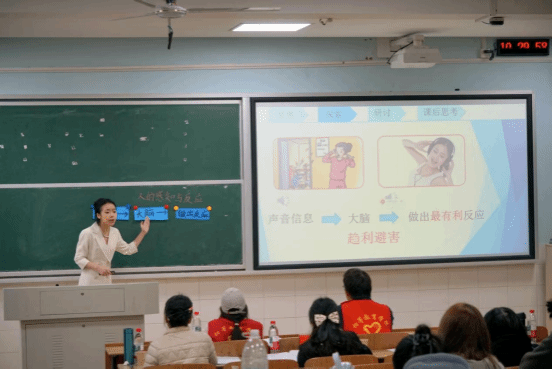 小学理科组4号选手夏子涵讲授的五年级科学《人的感知与反应》一课,以趣味互动点燃课堂,凭借严密的逻辑与扎实的专业功底脱颖而出。她立足教材与学情,以“科学观念建构”为核心,采用“聚焦—探索—研讨”的递进式教学结构,层层突破重难点。课堂导入的“我做你动”小游戏迅速吸引学生注意,随后通过冷热水触觉实验、声音辨识等互动环节,引导学生在体验中探究“刺激与反应”的关联。小组讨论与黑板抓握挑战进一步加深了学生对“感觉器官功能”“信息处理模型”的理解,培养了科学探究与合作能力。整堂课以学生为中心,将生活化情境与趣味化实验相融合,彰显了小学科学教学的科学性与趣味性,展现了未来科学教师的创新意识与育人担当。