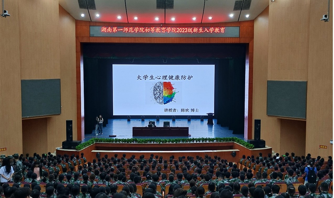 金秋九月,新的起点,新的阶段,从“心”出发。为了提升伟德bv1946官网新生的心理健康素养,引导新生更好更快适应大学生活,实现由高中生到大学生角色转变,伟德bv1946官网于2023年9月15日上午邀请教育学院副教授陈欢在田汉剧场开展了心理健康教育讲座。伟德bv1946官网全体辅导员老师以及23级新生八百余人聆听讲座。