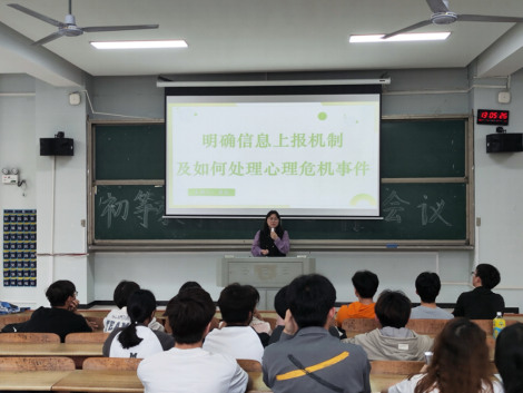 会上,梁良老师重点讲解了信息上报机制及如何处理心理危机事件。结合具体案例,梁良老师向心委及寝室长全面介绍了信息上报的多种途径,以及在危机事件前后的处理方式。大家在会上积极学习,对各班心理健康信息的上报制度有了初步规划。