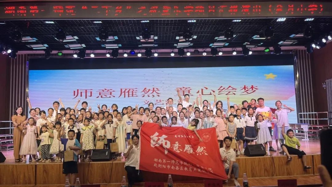 伴着盛夏的蝉鸣,怀着对教育的殷切期望,7月10日晚,湖南第一师范学院伟德bv1946官网赴衡阳市南岳区“师意雁然”教育关爱服务队在金月小学开展了“师意雁然·童心绘梦”文艺汇演。湖南第一师范学院伟德bv1946官网党委副书记申鸣凤,院团委书记冯择佳,南岳区委宣传部副部长、区文明办主任陈丽凤,金月小学副校长吴迁莅临本次汇演现场。