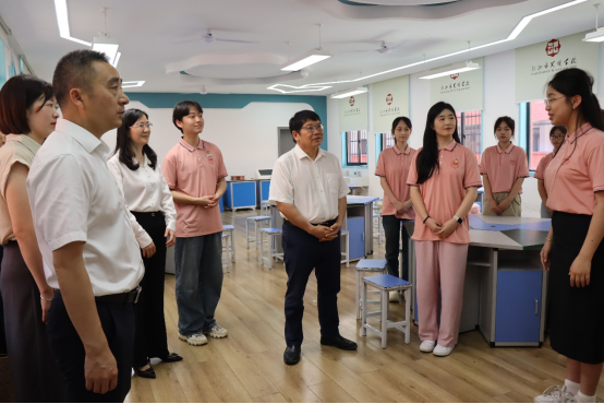 7月4日上午,校党委书记罗成翼、副校长蒋蓉一行抵达韶山市芙蓉学校,调研慰问伟德bv1946官网“声传红迹”“三下乡”社会实践团队。韶山市委副书记、统战部部长刘志刚,韶山市副市长彭乐,韶山市教育局局长周劭、韶山芙蓉学校副校长张乃佳陪同调研。