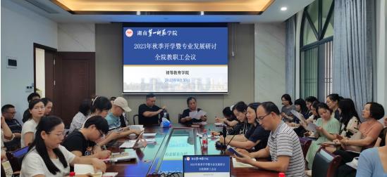 8月30日,伟德bv1946官网召开2023年秋季开学暨专业发展研讨工作会议。伟德bv1946官网院长曾晓洁、党委副书记申鸣凤、副院长陈华仔以及全体教职工参加会议。会议由曾晓洁主持。