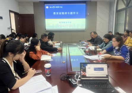 接着,陈华仔副院长开展教育家精神专题学习,领学中国教育学会会长、北京师范大学教授顾明远在贯彻落实习近平总书记教师节重要指示精神座谈会上的讲话以及对教师提出“躬耕教坛、心有大我”的期望;领学全国政协委员、北京师范大学国家高端智库教育国情调查中心主任张志勇学习习近平总书记来信并提倡“弘扬教育家精神、培育时代新人”的使命。