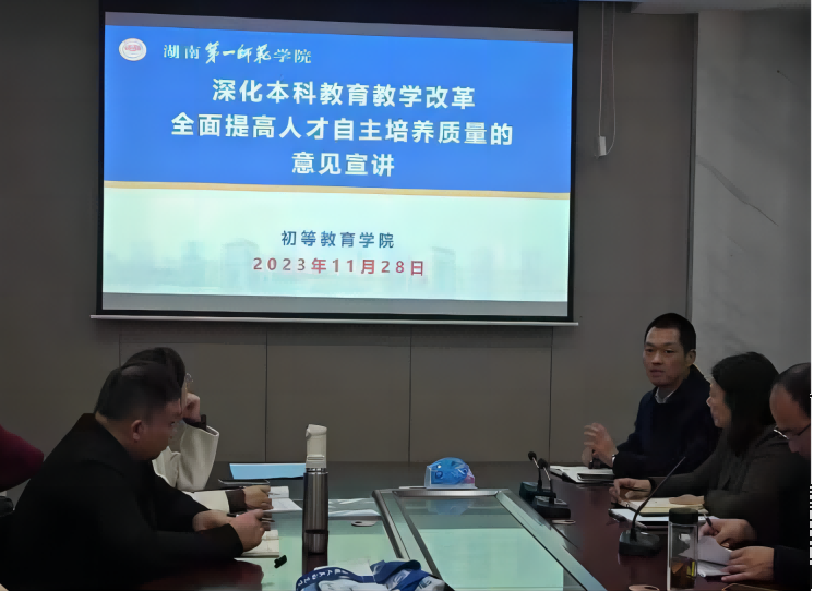 11月28日下午,伟德bv1946官网《深化本科教育教学改革 全面提高人才自主培养质量的意见》宣讲会在百熙楼123会议室举行,曾晓洁院长、申鸣凤副书记、陈华仔副院长、叶波副院长和全院教职工参加会议。