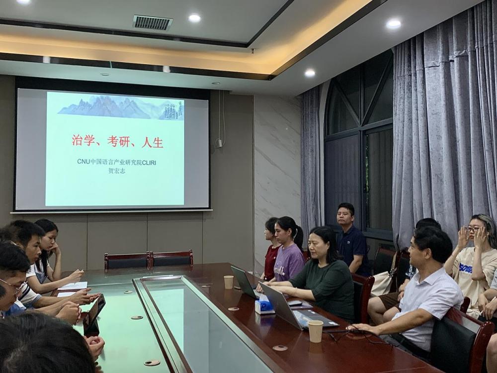 7月28日上午,北京师范大学教育经济与管理学博士、中国语言产业研究院院长贺宏志为伟德bv1946官网师生开展了以“治学·考研·人生”为主题的讲座。讲座由学院院长曾晓洁主持。学院教师代表及30余名暑期留校备战考研学生参加了本次讲座。