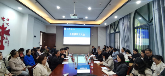 10月22日下午,我院在百熙楼123会议室召开全院教职工大会,院党委书记李宣平、院长曾晓洁、副院长唐文杰以及全体教职工参加会议。会议由李宣平主持。