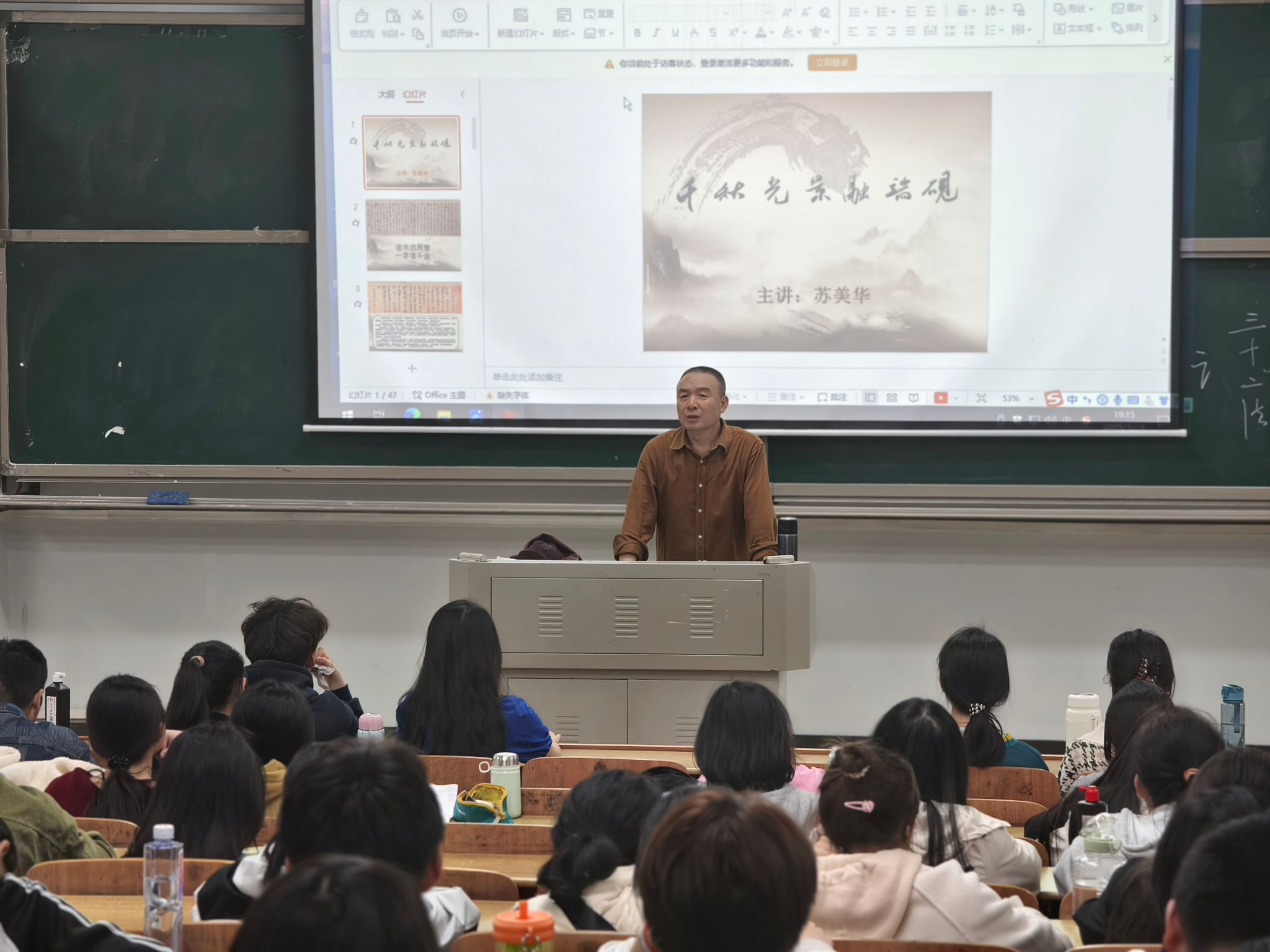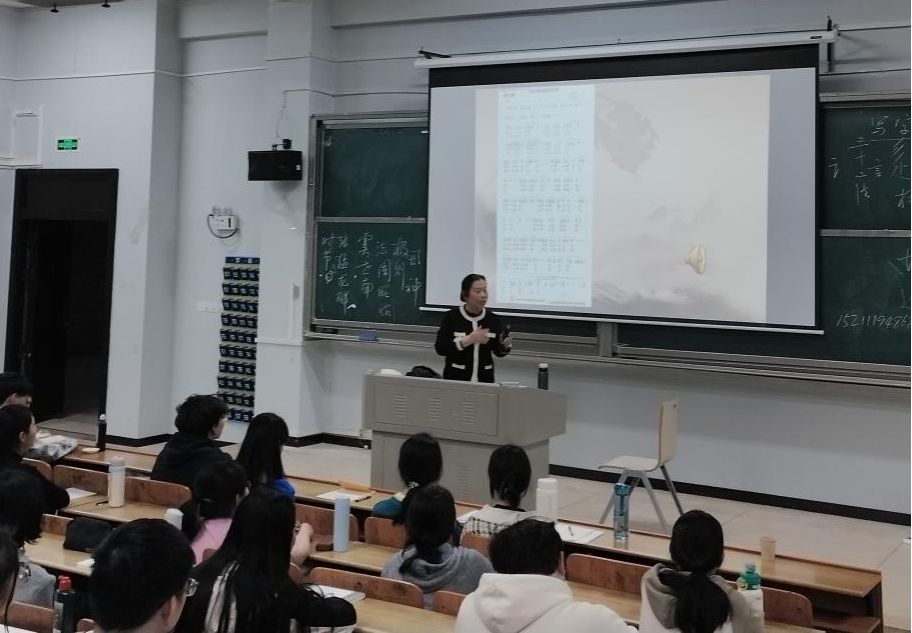 3 月 24 日晚,伟德bv1946官网首次师范生书法评鉴能力培训活动在怀中楼(南)208教室举行。本次培训以“三笔字中的毛笔书写”为主题,特邀湖南省书法家协会知名教授、学校关工委委员苏美华教授担任主讲,吸引了百余名师范生参与。学校关工委副主任何文出席活动。活动由学院学工办副主任曾志远主持。