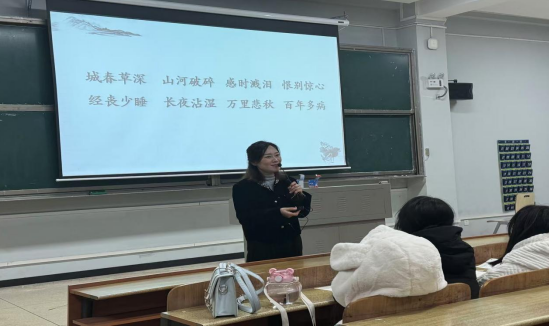讲座伊始,陈静老师巧妙引用“对牛弹琴”的典故,采用“反手弹琴”的方法讲述教书育人应循循善诱、因材施教;之后陈老师围绕师范生的理想引导学生深度思考,指出同学们要将个人职业规划和国家发展战略紧密联系,提醒同学们多元化发展自身潜力,努力跟随时代潮流进步。陈静老师还引用龚自珍的生平和两首《己亥杂诗》,邀请同学一起解读语文核心素养背后的课程理念,以杜甫的《闻军官收河南河北》课例引导学生感悟语文教师的深厚文学素养功底和优秀的教学设计能力;最后,陈老师用“不为模糊不清的未来担忧,只为清清楚楚的现在努力。只有先改变自己的态度,才能改变人生的高度”,鼓励大家树立远大的理想,拼搏奋进,为祖国的教育事业贡献力量。