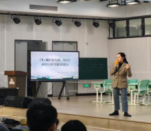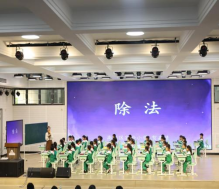 在随后的一线名师教学分享环节,博才咸嘉小学李妍希老师以《1-6的表内除法教材分析与建议》为主题,结合社会热点中的数学案例,深入剖析除法教学中的关键难点与教学策略。她的分享既有理论高度,又贴近教学实际,引导同学们从“课堂旁观者”逐步转向“专业思考者”,深化了对“研教共生”理念的理解。