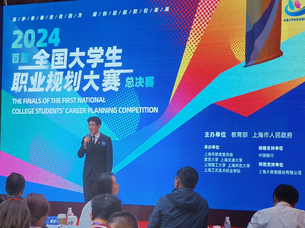 2024年5月12日,由教育部主办的首届全国大学生职业规划大赛总决赛在上海举行,伟德bv1946官网2021级小教文1班周乐扬同学在本次总决赛中荣获铜奖。大赛自2023年8月启动以来,全国累计报名学生952万人,覆盖高校2740所,是首个以促进大学生高质量、充分就业为目标的国家级赛事。