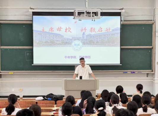 江华军代表科教系全体教师向新生的到来表示热烈欢迎,并向新生们详细介绍了科学教育专业的建设与发展历史、专业特色、师资队伍、办学条件、学生发展等方面内容。他强调,在国家高度重视并通过各项政策大力推动科学教育发展的当下,应深刻认识到国家对专业人才培养质量提出的更高要求。他向新生提出以下四点希望:第一,锚定目标,明晰学习目标与职业规划,成为有明确目标之人;第二,勤奋学习,珍视课堂及实践机会,培育研究型学习思维,成为热爱学习之人;第三,注重综合素质与能力的培养,积极投身于个人专业技能的发展,成为全面发展之人;第四,保持积极乐观的心态,强化体育锻炼,成为身心健康之人。