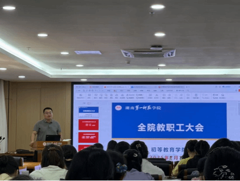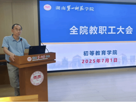 2025年7月1日上午,伟德bv1946官网在百熙楼414会议室召开全院教职工大会,总结近期教学工作成果、部署人才培养方案修订及本科教育教学审核评估相关工作。党委副书记马青梅、副院长唐文杰、李汉学出席会议。院长曾晓洁主持会议。