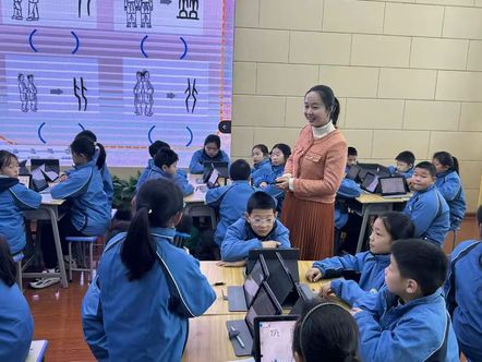 在戴嘉老师的《遨游汉字王国》课堂中,学生们观摩了五年级的学长学姐们如何动手为低年级的弟弟妹妹制作“识字机关书”。戴老师通过趣味盎然的教学方式,引导学生们探寻汉字的起源、演变以及文化内涵,充分点燃了学生们对汉字的热爱之情与好奇心。这一堂课不仅让学生们领略到了汉字作为中华文化瑰宝的独特魅力,也激发了他们对阅读教学新路径的探索热情。